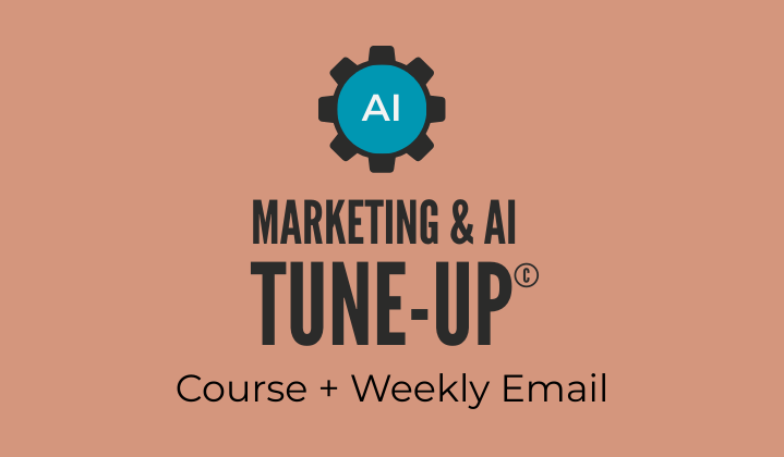 The Marketing & AI Tune-Up© is a 6-week online class that helps you clarify your strategy and messaging, build a calm weekly marketing system, and use practical, human-first AI without losing your voice.